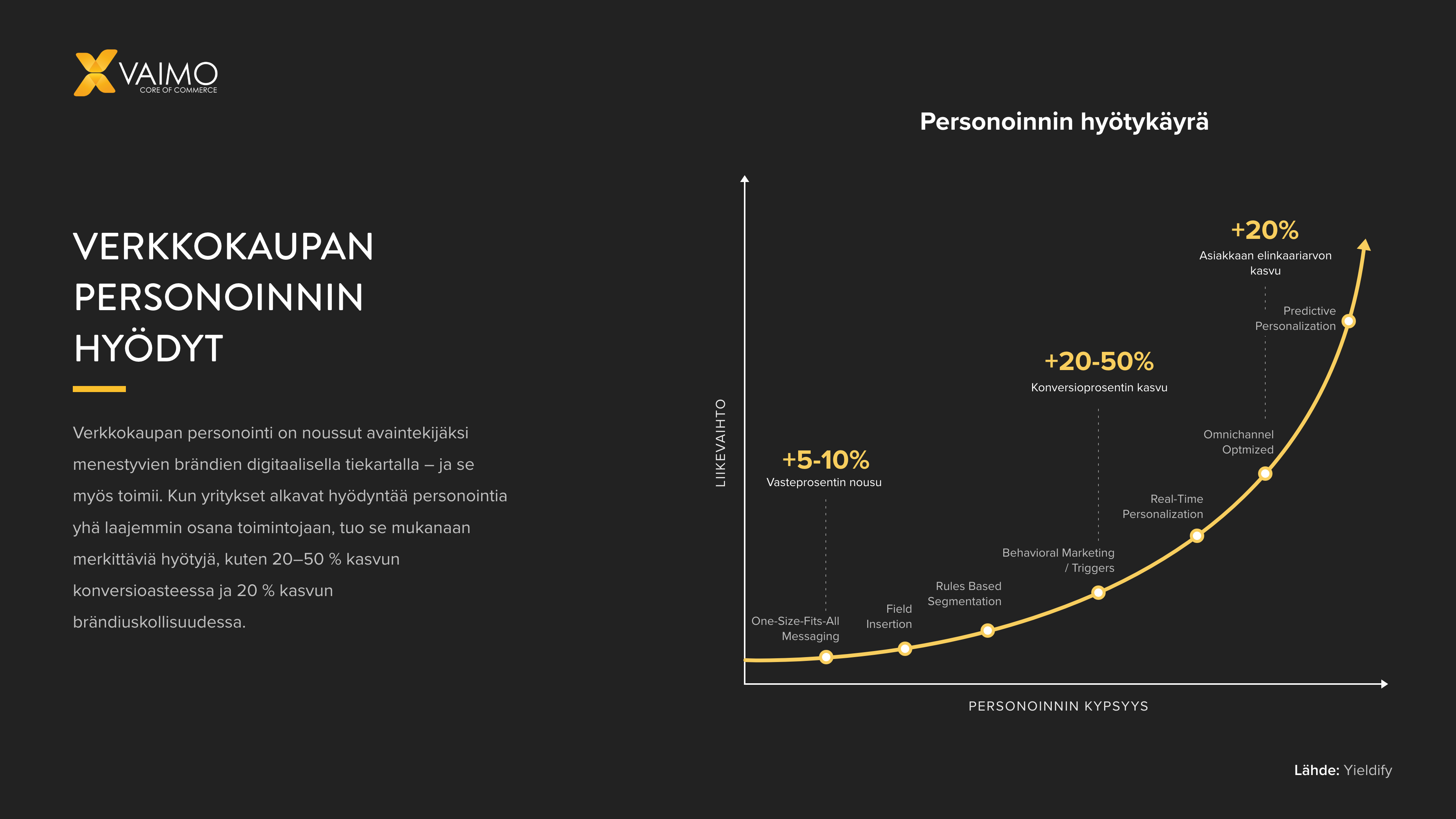 Vaimo järjesti yhdessä Voyadon kanssa webinaarin, jossa Mattias Eriksson Voyadolta ja Maurus Puttonen Vaimolta keskustelivat, kuinka voit personoida asiakasviestintää ja luoda asiakkaillesi hyvän ja saumattoman asiakaskokemuksen. Katso webinaarin tallenne tästä: