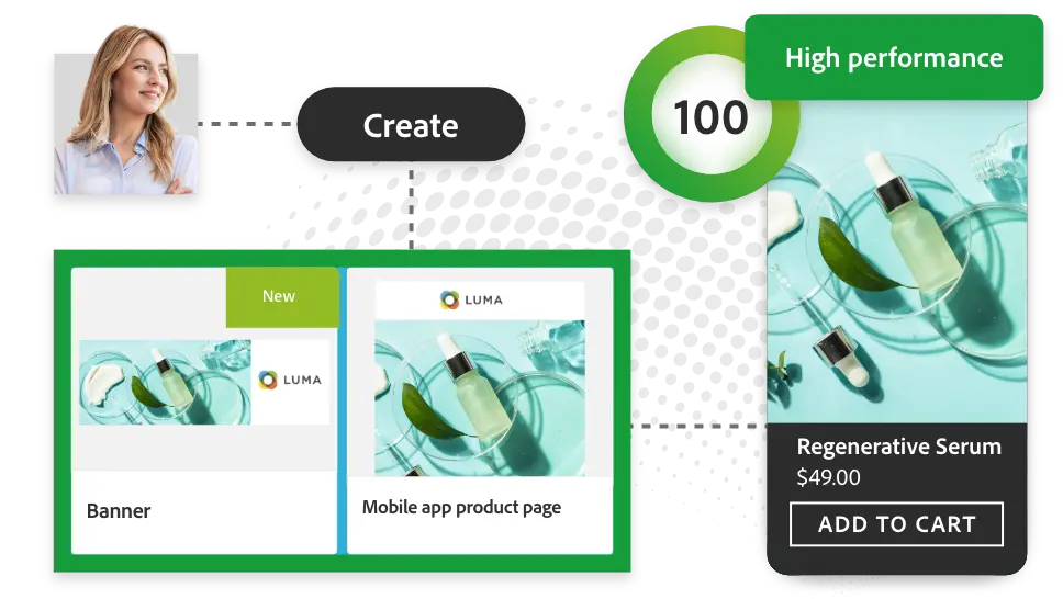 - Expériences personnalisées et centrées sur le contenu : offre une expérience d’achat B2C et B2B de premier ordre, soutenue par l’intégration avec Adobe Target et Adobe Analytics pour créer une machine marketing inégalée.