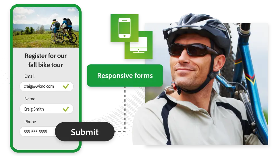 Adobe Experience Manager inclut Forms, une solution full-funnel qui simplifie la création de formulaires dynamiques que vos clients peuvent facilement remplir et signer en ligne de manière sécurisée.